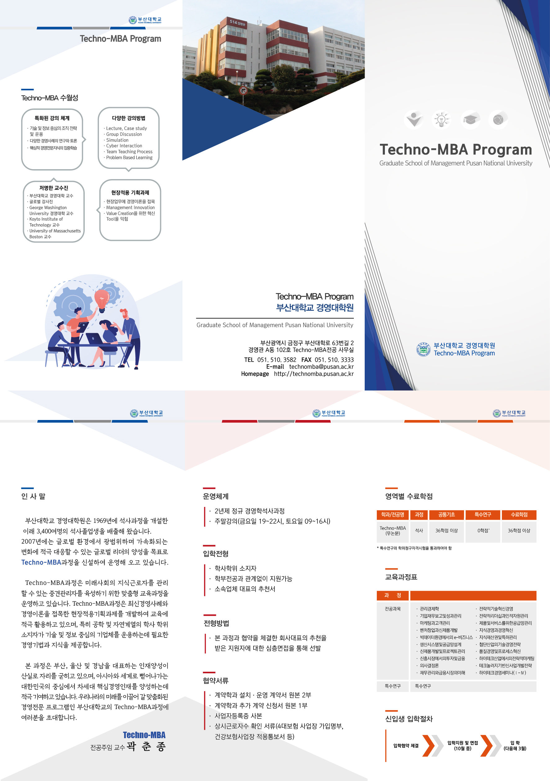 요청서류 및 기타 문의사항은 학과사무실(3582)이나 이메일(technomba@pusan.ac.kr)로 연락바랍니다